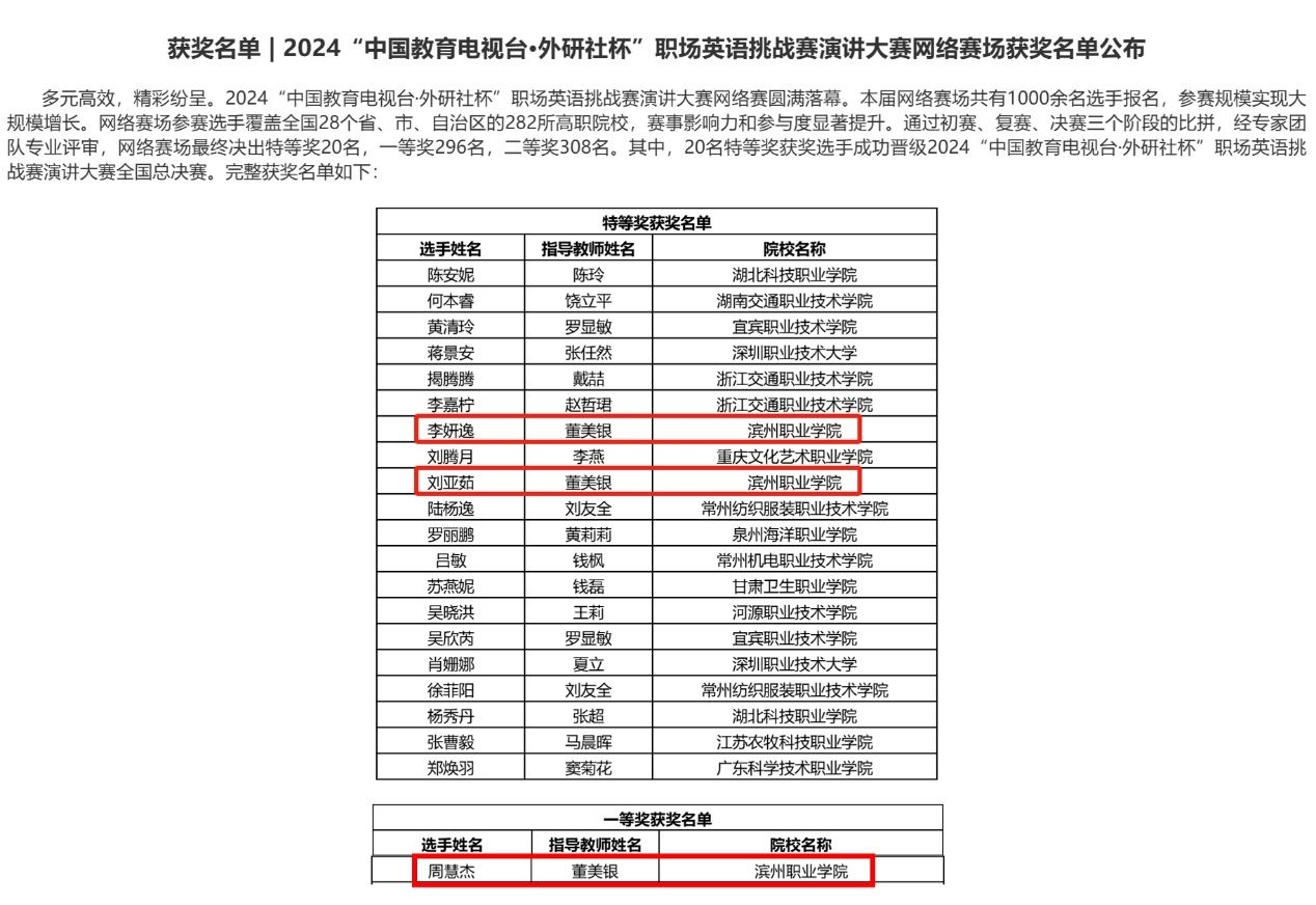 我校荣获2024“中国教育电视台·外研社杯”职场英语挑战赛演讲大赛特等奖