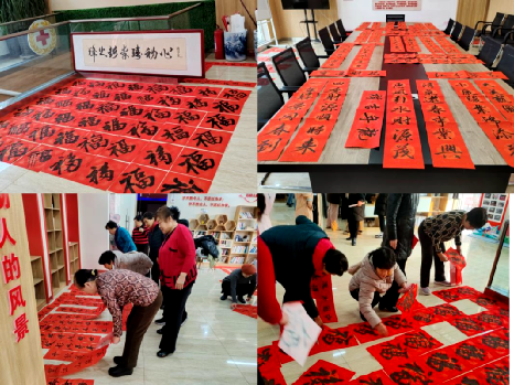 春联是中华民族独具特色的传统文化,以对仗工整、简洁精巧的文字表达了百姓们祈福迎祥和美好愿望。写春联不仅是一种民俗活动,更是赓续文化血脉的难忘符号。活动现场,我院志愿者代表挥毫泼墨,倾情书写,一幅幅寓意吉祥的春联,一张张喜气洋洋的“福”字,化作最真挚的新春祝福,让社区居民提前感受到了浓浓的年味儿。随后,工作人员将新春对联赠予现场居民群众,让社区邻里齐齐享“福”为居民送上新春祝福。