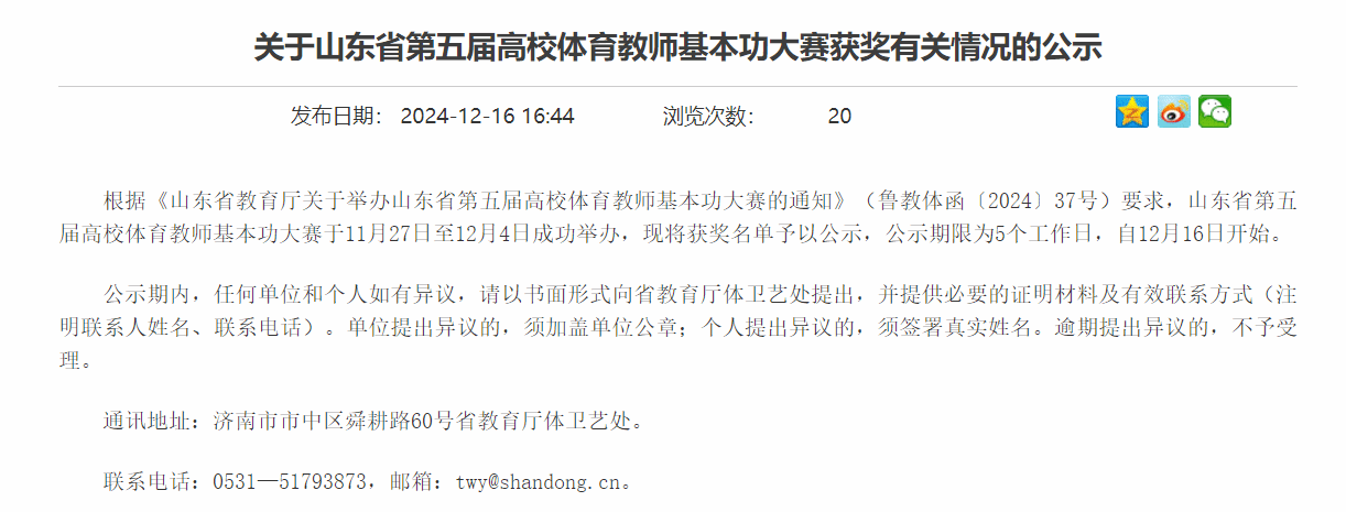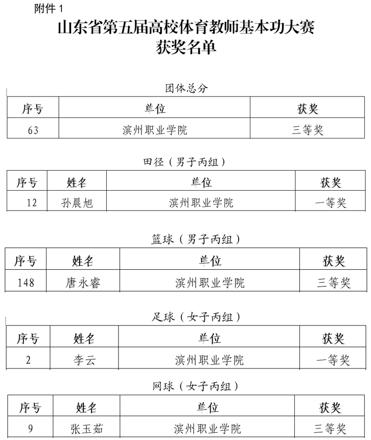山东省体育教师基本功大赛每三年举办一次,是我省规格最高、规模最大的高校体育教师技能比赛,也是加强高素质、专业化体育教师队伍建设,促进学校体育教育教学水平提升的有效抓手。最终,我校在此次比赛中获得团体总分三等奖,教师孙晨旭荣获田径丙组一等奖、李云荣获足球丙组一奖、唐永睿荣获篮球丙组三等奖,张玉茹荣获网球丙组三等奖。